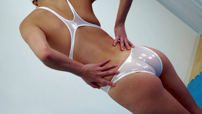 白いが全身スケスケの競泳水着がエロ過ぎ!!